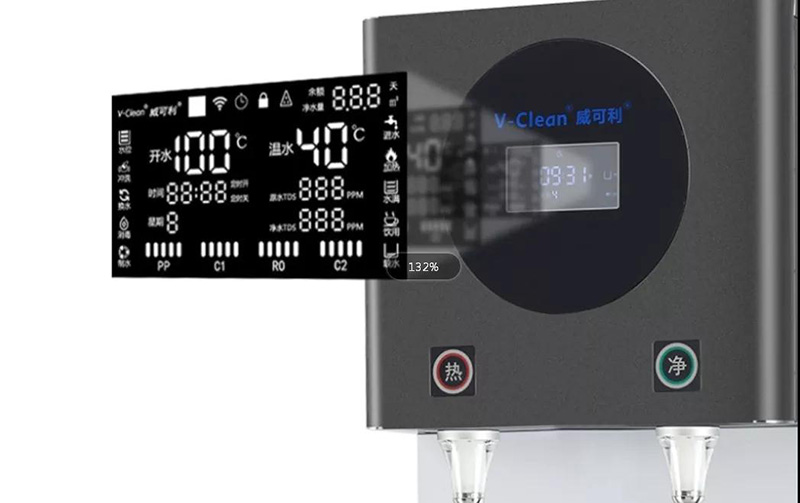 设备还具有滤芯检测、水质监测、故障报警等多项智慧功能,通过机身上的十寸高清LED显示屏可以清晰看到水温、时间、水质TDS值、滤芯寿命、净水总流量等信息,让饮水安全看得见!