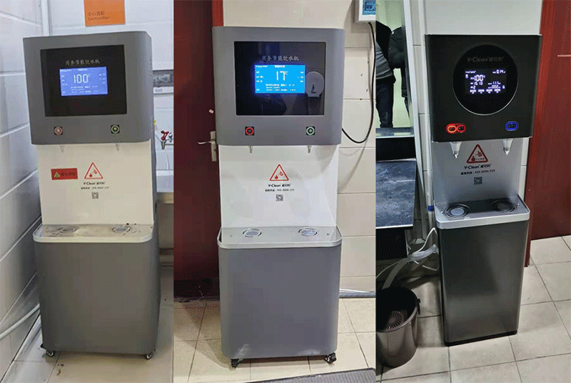据介绍,该批设备采用的是五级过滤净化系统,其中一级是RO反渗透膜滤芯,能有效地去除水中重金属、细菌等有害物质,保障水质出水安全;一开一直饮的出水方式,满足病人和医护人员不同的取水需求;智能系统,自动检测水质、滤芯使用寿命、水温、设备运行状态,通过高清LED屏显示,让饮水安全健康一目了然。