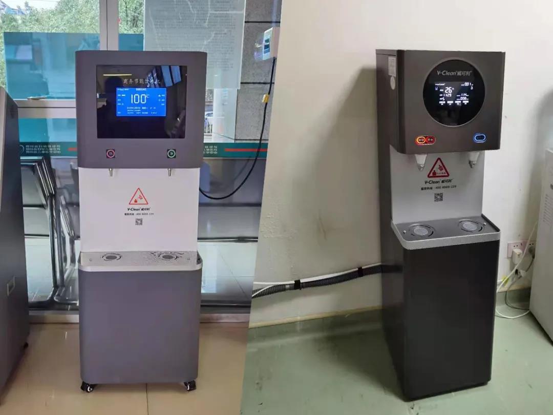 据介绍,该批设备采用的是五级过滤净化系统,其中一级是RO反渗透膜滤芯,能有效地去除水中重金属、细菌等有害物质,保障水质出水安全;一开一直饮的出水方式,满足病人和医护人员不同的取水需求;智能系统,自动检测水质、滤芯使用寿命、水温、设备运行状态,通过高清LED屏显示,让饮水安全健康一目了然。
