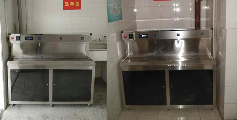 一般校园打水高峰都是集中在课间休息的短短10分钟,传统的单龙头或双龙头的开水器每次只能一人或两人同时打水,导致有些学生来不及打水,因此校方选用了4龙头的直饮水设备,能多人同时打水,减少学生排队等待打水的时间;大容量水箱,保证供水量;智能水控,水不开不出水,确保饮用的水都是经过高温杀菌;多级精密过滤系统,高效去除水中有害物质,出水水质安全卫生;为全体师生饮水健康保驾护航!