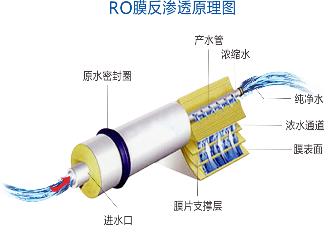 RO是英文Reverse Osmosis 的缩写,意思是反渗透。RO膜过滤其实就是利用渗透压力差为动力的膜分离过滤技术。