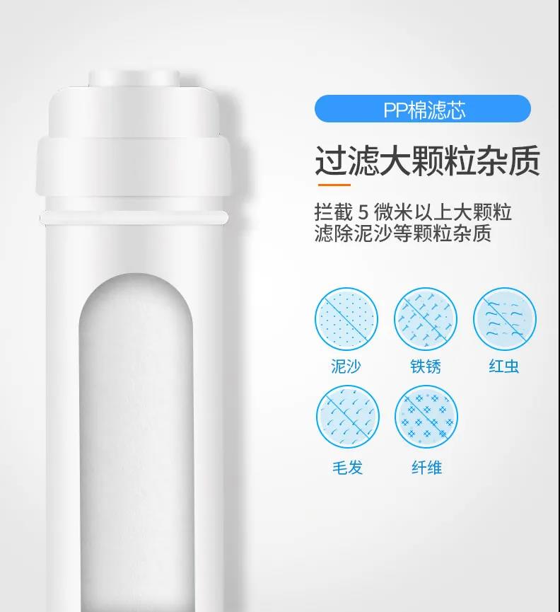 PP棉的作用:主要滤除水中的大颗粒物质,如泥沙、铁锈、胶体等,同时还能对后续滤芯起到保护的作用。由于是第一级滤芯,很容易污堵,所以需要经常更换,但成本不是很高。