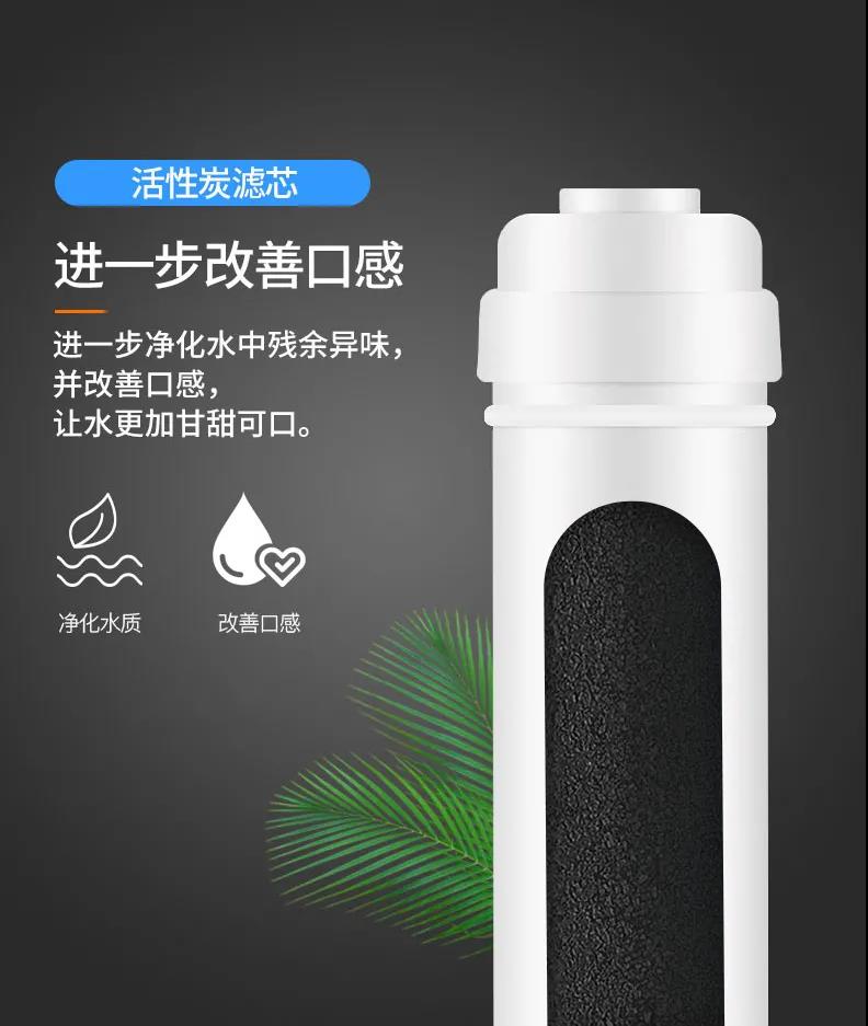 后置活性炭的作用:去除异味、改善口感。因为一般来说,经过RO膜净化后出来的水就已经是纯水了,但是很多人考虑到一个太纯的水是否会导致矿物质缺失的问题,所以加了后置活性炭,这样出来的水还是有点甜的味道。
