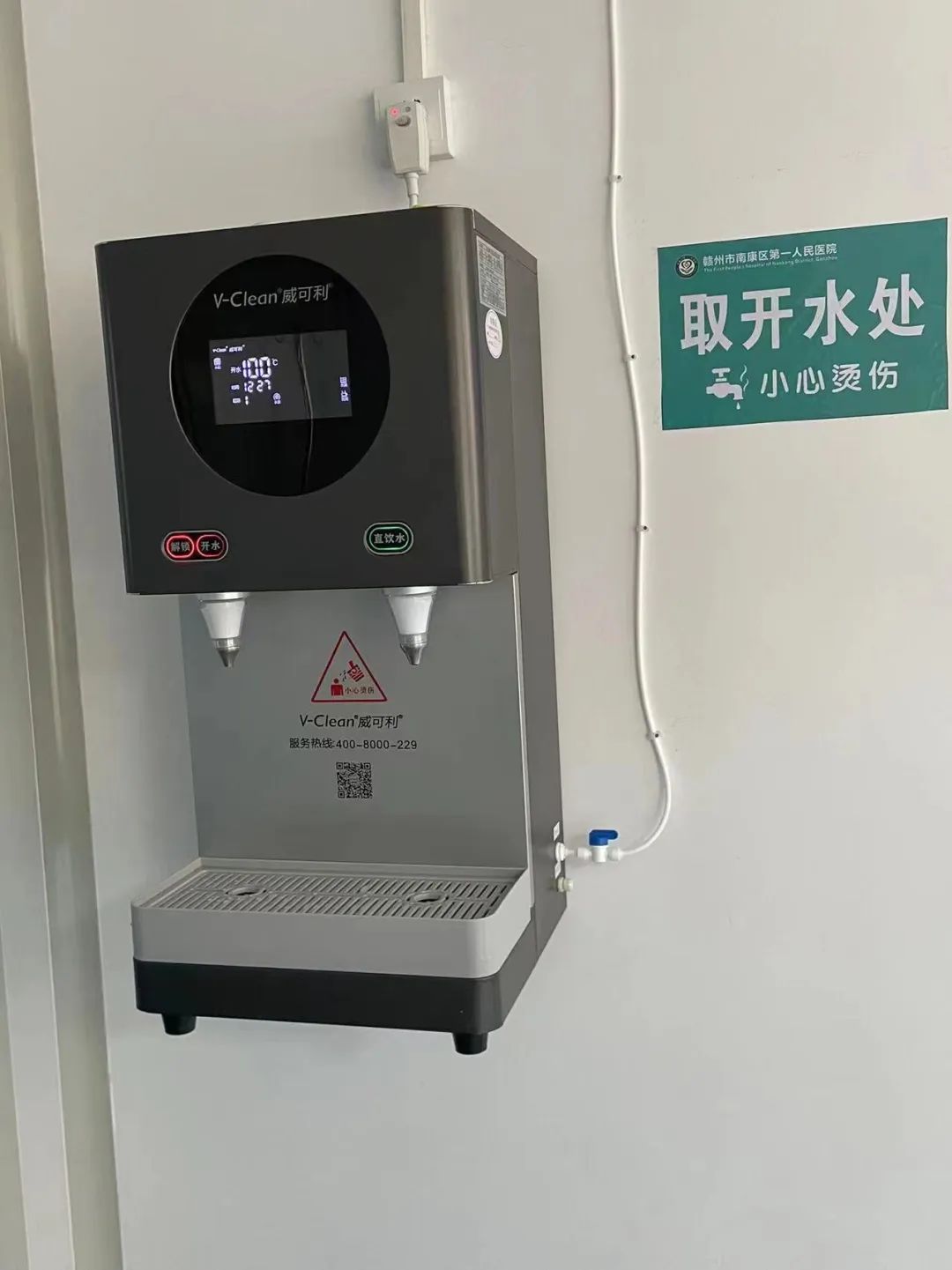 每天都有大量的患者前往医院就诊,再加上医院大量的医护人员,每天的饮水量需求非常巨大。南康区第一人民医院在之前就已经建成一套的净水系统,但是因为饮水点比较少,导致患者或者医护人员每次喝水都比较麻烦。因此,威可利给南康区第一人民医院制定了一个完美的解决方案——安装管线机。利用医院原有的净水系统把自来水净化成直饮水后,再输送到各个管线机,这样既可以解决饮水点少的问题,又可以让患者和医护人员喝上安全的直饮水。