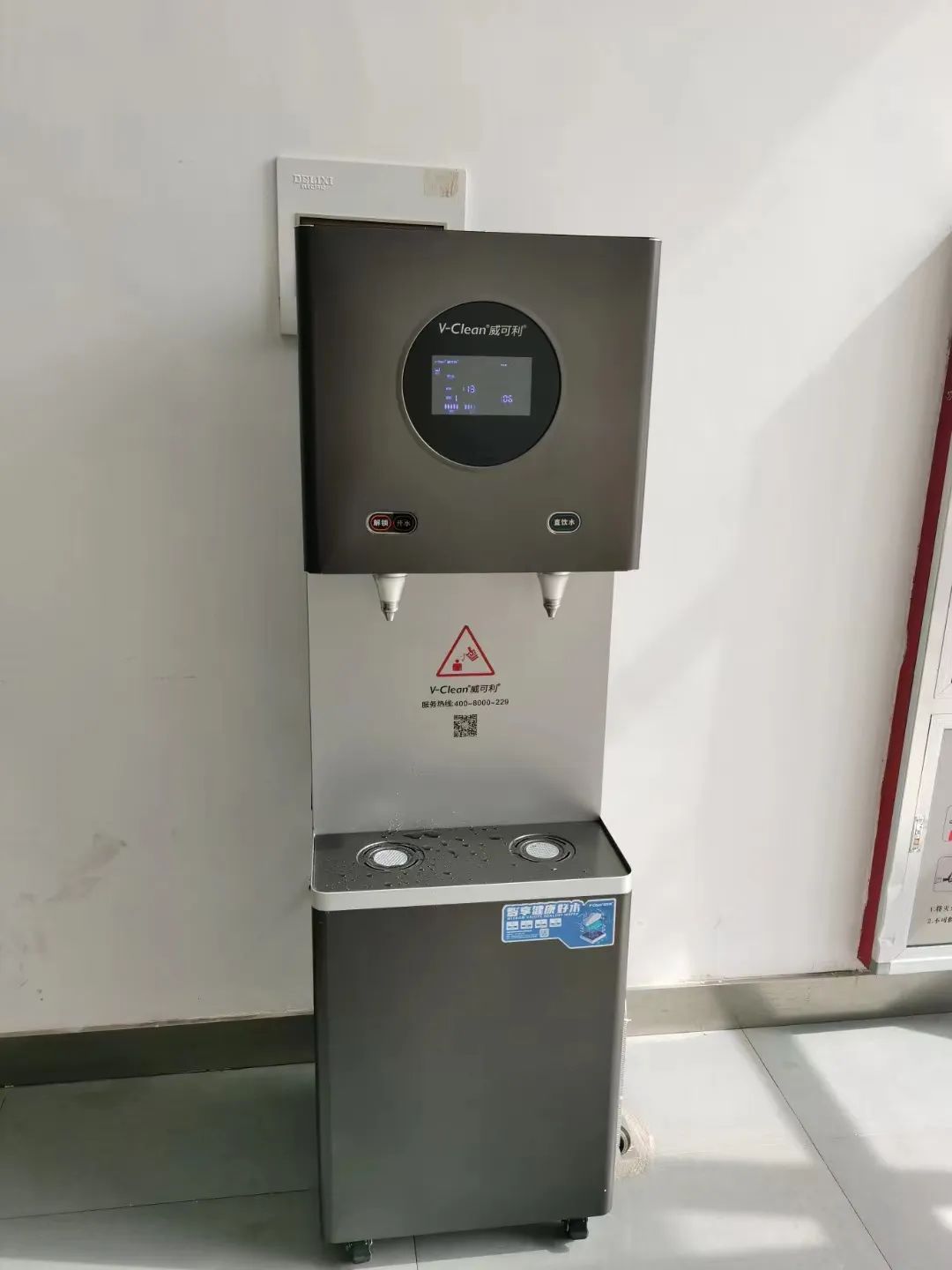 博物馆引进的这款威可利商务直饮水设备,内置多级过滤净化系统,有效地滤除自来水中的各种有害物质,保障饮水水质的安全;同时,采用步进式加热技术,从底部逐层进水,逐层加热,有效解决传统开水器产生“阴阳水”的问题,让饮水水质更健康。直饮机在末端出水处还采用了威可利全新的专利发明——UV-LED杀菌龙头,高效杀菌,守护末端出水安全。