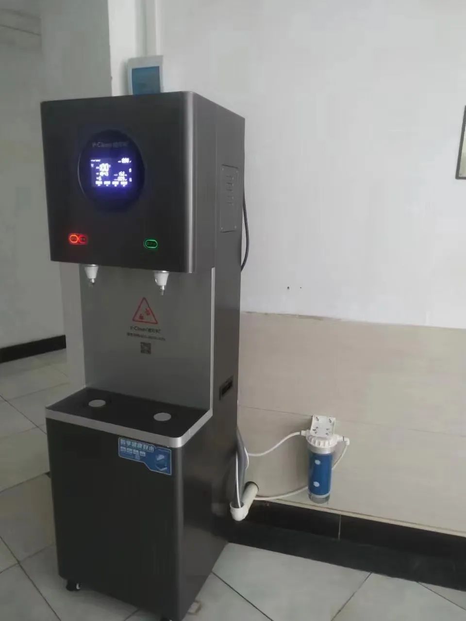 除此之外,搭载了智能微电脑控制系统,自动进水、自动加热、定时开关机,实时监测等,全自动运行,无需专人看管,设备的运行状态可以通过机器配备的高清显示屏轻松掌握;直饮机的出水方式采用一开一直饮,开水可以满足工作人员冲泡的需求,直饮水可以满足工作人员即取即饮的需求,工作人员再也不用像以往那样等水烧开,又要等水放凉才能喝。