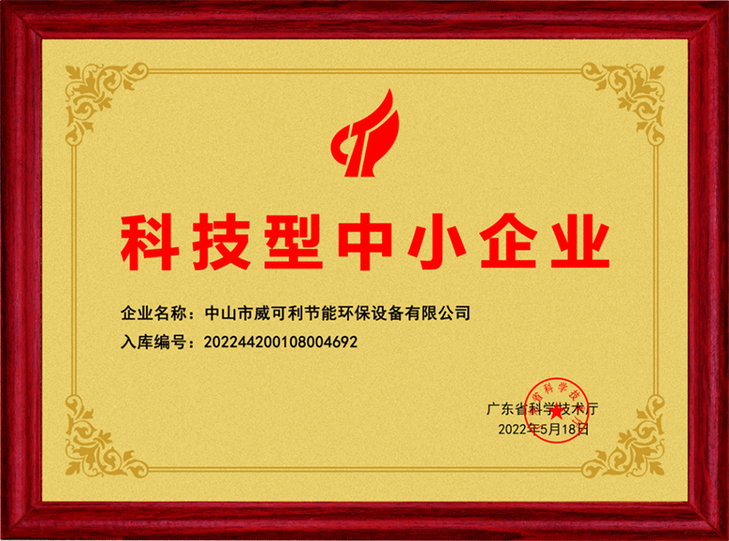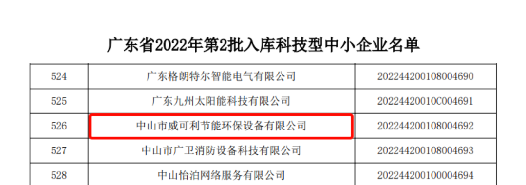广东省科技厅近日发布了广东省2022年第二批入库的科技型中小企业名单,经过省科技厅的审核,中山市威可利节能环保设备有限公司(以下简称“中山威可利”)成功入库广东省科技型中小企业名单。