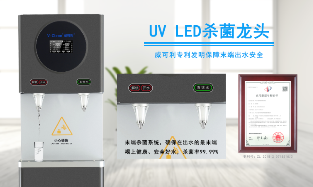 全新专利发明能保障末端出水安全的UV LED杀菌龙头,把安全做到最后1mm,真正做到让您饮水无忧!杀菌龙头采用UV LED杀菌器,杀菌灯与水不接触、水电完全分离设计,所有涉水配件均符合食品卫生安全要求,保证用水安全,保障了我们饮水的最后一道防线。