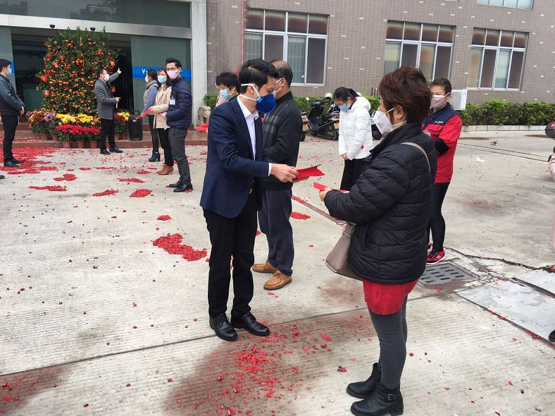领导们为大家派发开工红包,象征着吉利、喜庆、祥和、团结,更象征着威可利对大家的人文关怀。红彤彤的红包象征着威可利在新的一年里红红火火!