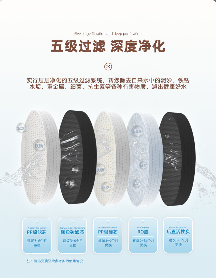 过滤系统:五级过滤(RO400+6G压力桶)