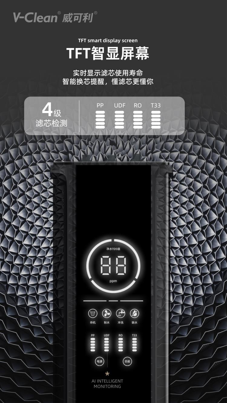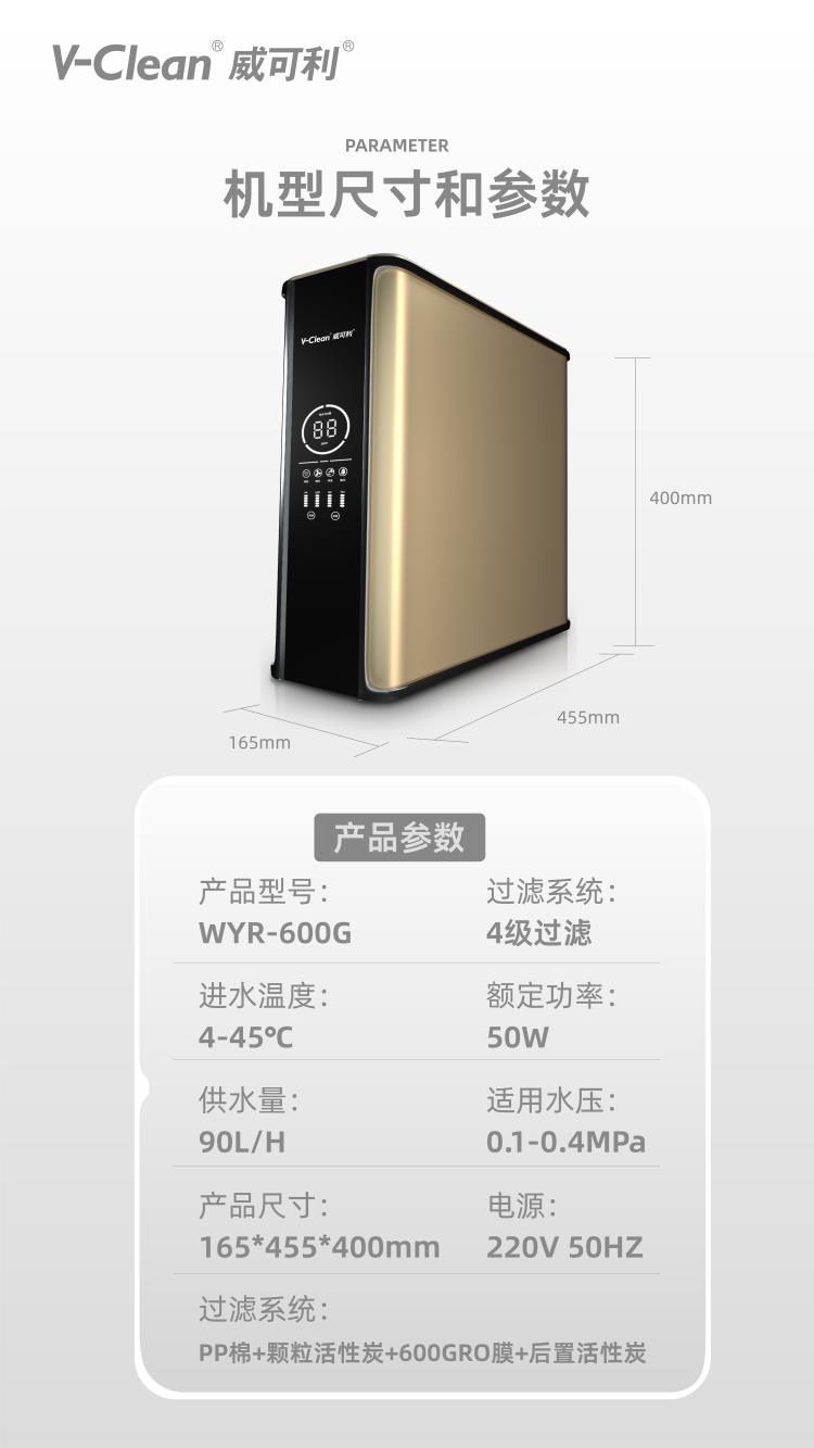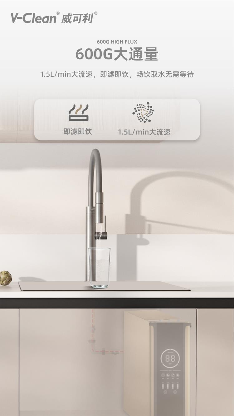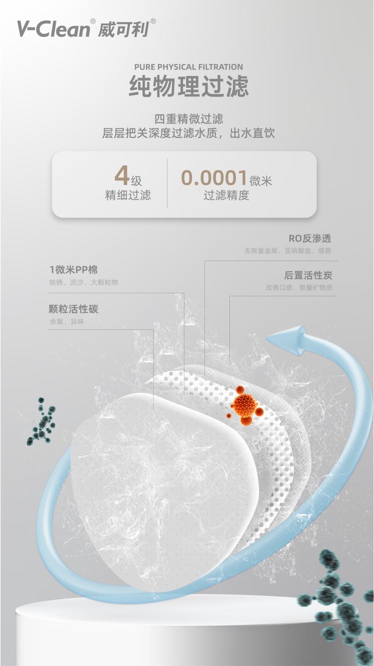 过滤系统:PP棉+颗粒活性炭+600G RO膜+后置活性炭