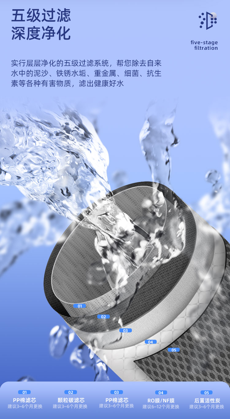 过滤系统:五级过滤(RO400+6G压力桶)