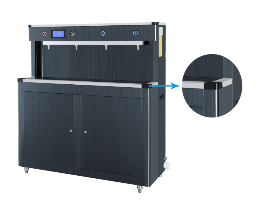 直饮机作为提供安全、健康水的设备,时常入驻各种场所,如:校园、地铁站、企业、大型商场等人流量较大的场所。直饮机屹立其中,在人来人往的时候难免会碰撞到设备,如果直饮机的边角是90度尖角设计的话,那么发生碰撞时就会对人体造成一定的伤害。