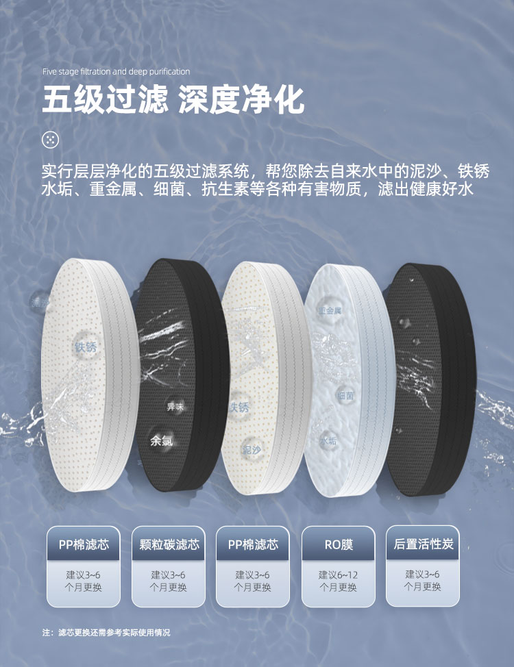 过滤系统:五级过滤(RO400+6G压力桶)
