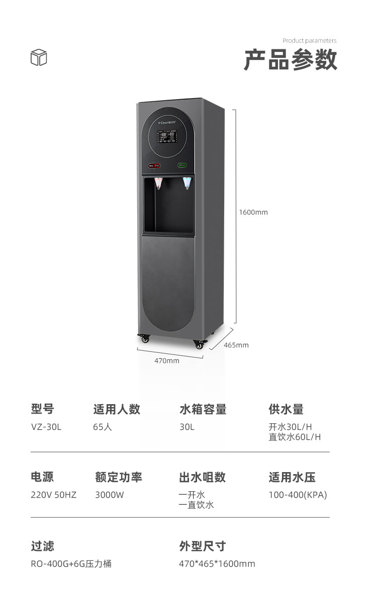 供水量:开水30L/H 直饮水60L/H