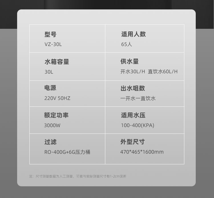 供水量:开水30L/H 直饮水60L/H