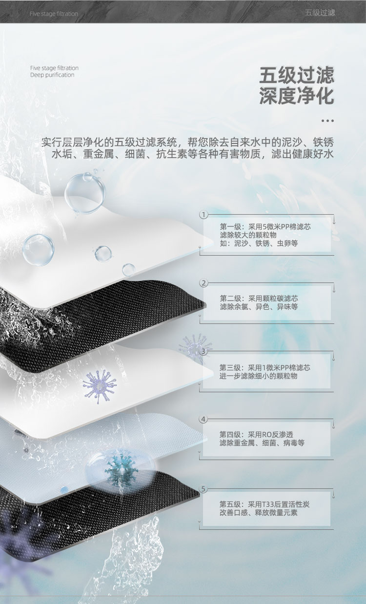 过滤系统:五级过滤(RO400+6G压力桶)